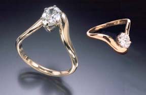 14k Gold Ring w/ white gold or Platinum prongs. Custom fit. Your stone or ours. As shown accomodates stones of .70-1.5 cts.