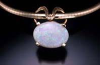 14k Gold Slide w/Genuine Australian Opal 18 X 13 m (aprx.) & .10 cts. diamond. (not shown). This unique one of a kind gem, is a full Opal weighing +/-7.2 cts., with a lovely pastel color play in shades of red, green, aqua, lavender, w/ a splash of pink.
